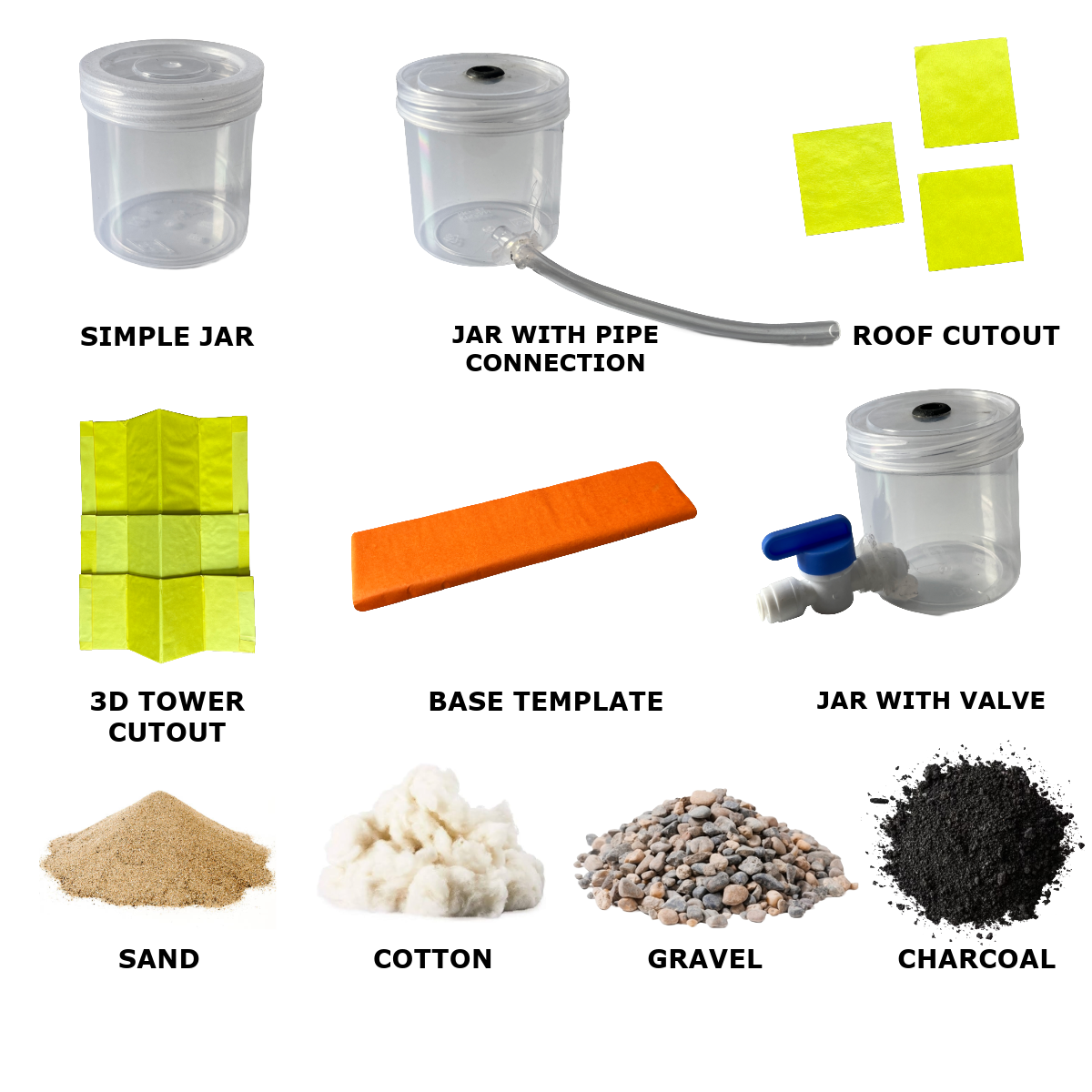 • 3. EASY TO UNDERSTAND FILTRATION PROCESS This model visually demonstrates how water passes through layers like gravel, sand, charcoal, and cotton, helping students explain the concept of basic water cleaning and filtration in an easy way.